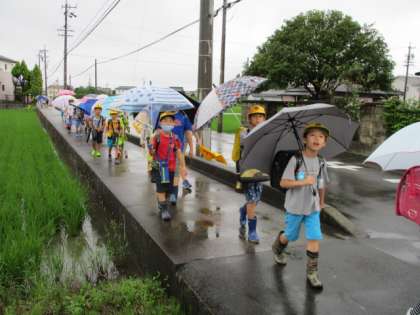 今日も小雨の中の登校。