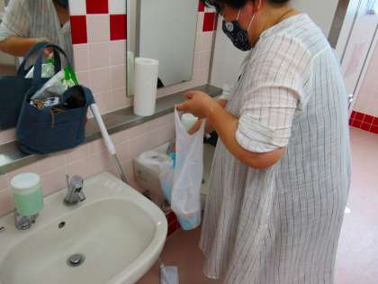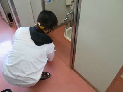 清掃ボランティアの方にトイレ清掃と消毒作業を行なっていただきました。