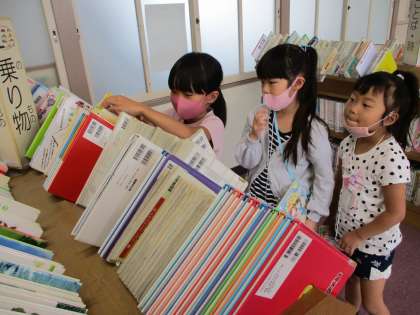 7・13(月) 1年 中間放課 公開日 2020/07/13 更新日 2020/07/13 1年生 としょしつで ほんを かります。 おかしの つくりかたが のっている ものがたりのほんが にんきです。 じっさいに つくってみると いいね。