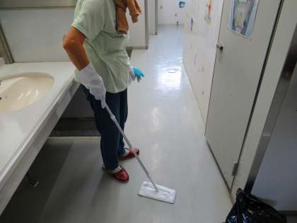 ボランティアの方による消毒作業・トイレ清掃が行われています。