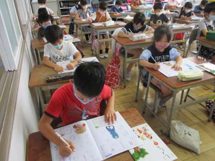 書き順を確かめた後、姿勢に気をつけて丁寧に練習をします。