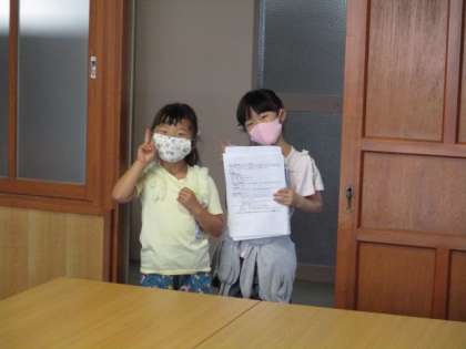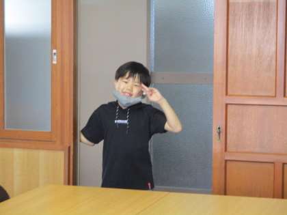 校長室に挨拶に来た 1年生と3年生。