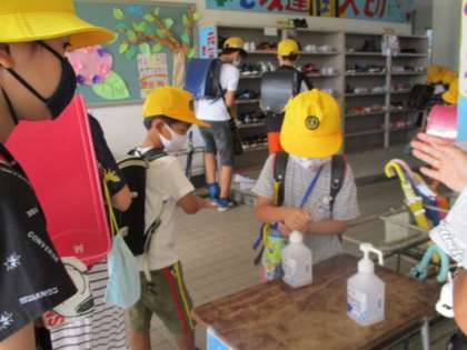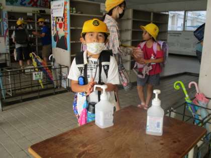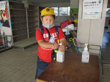 アルコールで手指消毒。