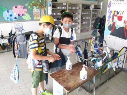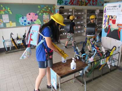 登校すると、昇降口で手指の消毒をすることができます。