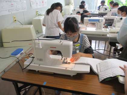 早い子は、ひもを通すところも縫い終わって、