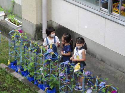 アサガオの成長を見る。