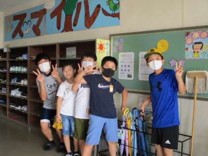 朝の靴箱で。
