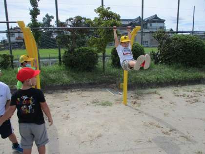 届かない高さの鉄棒にもぶら下がることができます。