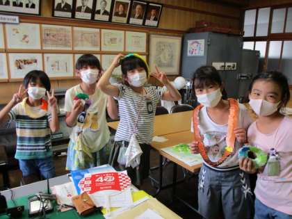 校長室に折り紙でできた飾りを持ってきた3年生。