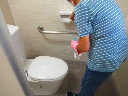 ボランティアの方によるトイレ清掃・消毒作業を行っています。