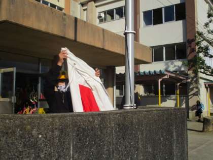 児童会役員の国旗掲揚。