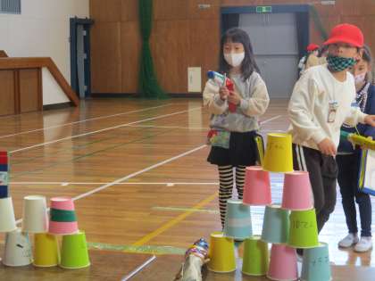 2年生のお兄さんお姉さんに招待されて「おもちゃフェスティバル」に参加しました。