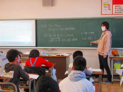 比例を使った練習問題の後に、グラフにある2つの直線からわかることについて調べました。