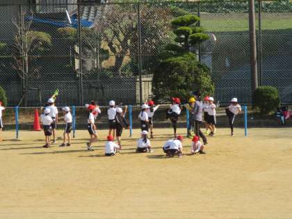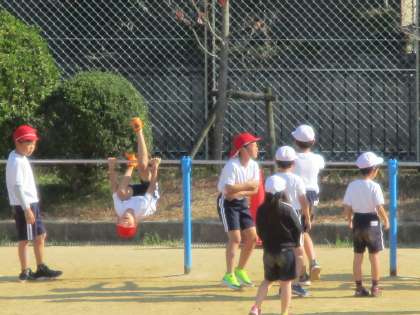 鉄棒運動。 今できる技や新しい技に挑戦です。
