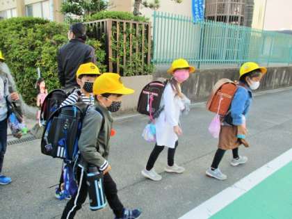 1年生と2年生の下校。