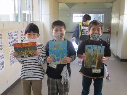 中間放課に本を借りてきた なかよし学級の子どもたち。