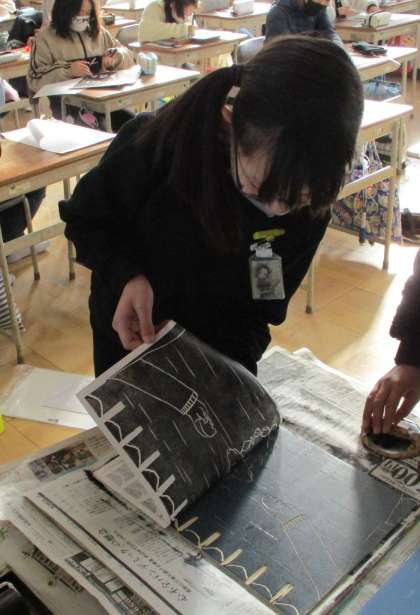 版画。最後の仕上げをして、刷ります。