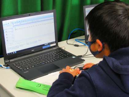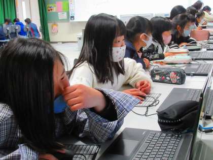 パソコンを使って、音符と音階を考えて、音楽を作ります。