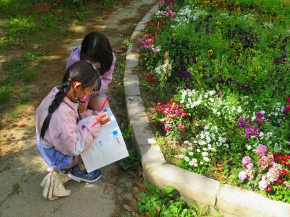 テントウムシやカエル、タンポポやパンジーなど、いろいろな生物を見つけることができました。