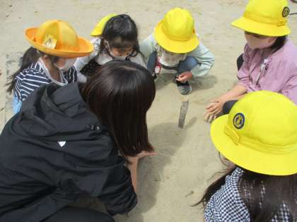 砂場では棒倒しをしていました。
