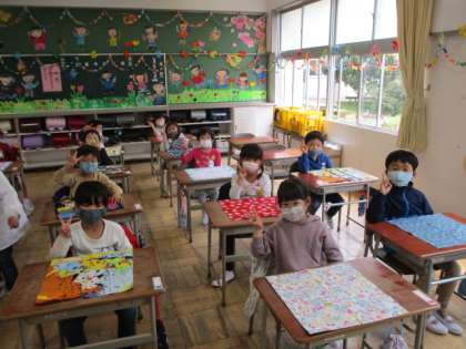 給食当番の人がコンテナー室に行っている間、ほかの人は、席で静かに待ちます。