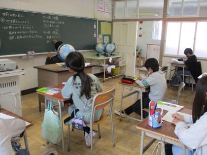 地球儀を見て、気づいたことを発表し