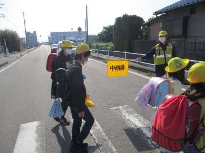 地域の方に登校を見守っていただきました。