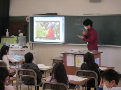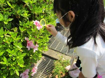 虫眼鏡の使い方を学んだあと、校庭にある植物を観察します。