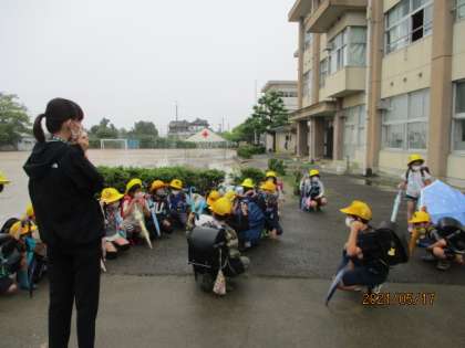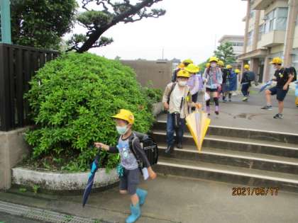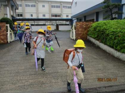 雨がやんでいる間に下校。