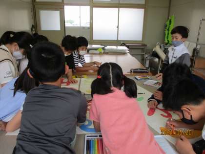 中間放課に児童会室で、児童会の児童たちが