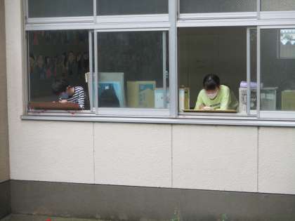 学校の中で好きなところを写生します。