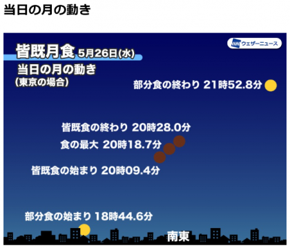 今回の月食は、日本ではちょうど月が空に昇ってくる頃から部分食が始まります。
