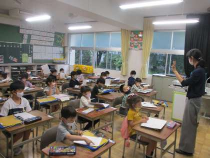 5・27(木) 1ねん1くみ せいかつ 公開日 2021/05/27 更新日 2021/05/27 1年生 きょうは がっこうたんけんを します。 そのまえに ちゅういすることを せんせいから ききます。
