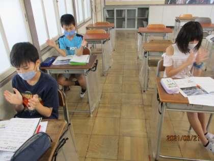 リズムに合わせて拍子を打ちます。 うまくできるかな。