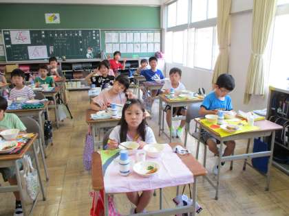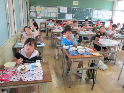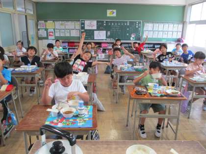 みんな給食を楽しく味わっています。