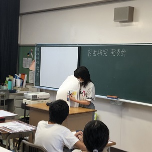 夏休みの自由研究の発表会を行いました。様々な分野からの発表にみんな興味深く聞く姿が見られました。