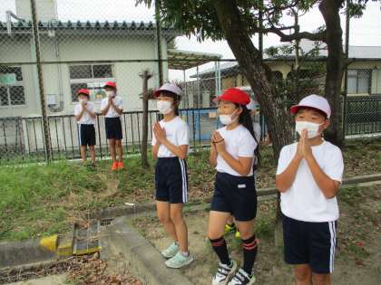 鬼ごっこ中に手を合わせた子たち。 こうすると鬼から見えなくて捕まらないそうです。
