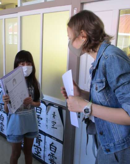 英語の先生に、家族を紹介します。