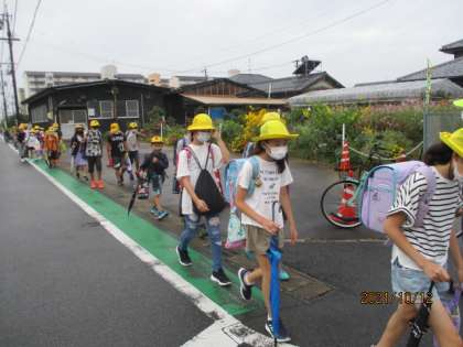 朝方は雨が降っていましたが、登校の時には、雨がやんでいました。
