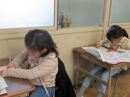 みんな いっしょうけんめいに せっけいずを かんがえました。