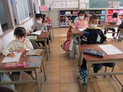 風景を想像して、絵をかきます。
