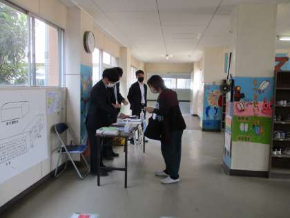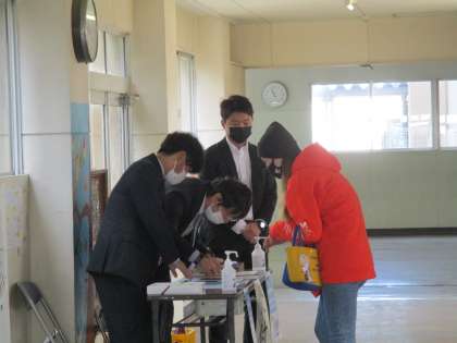 受付では、保護者確認や検温のご協力をいただいています。