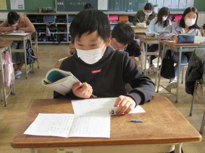 自分で書いた下書きから、内容を読み返しながら清書をしていきます。