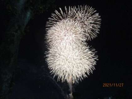 子どもたちは、学校で、将来の夢や希望を思い、それを短冊に書きました。その短冊が今日打ちあがった花火の玉に貼られていました。