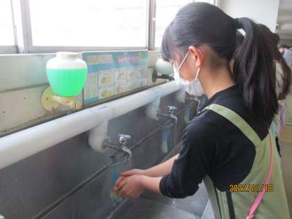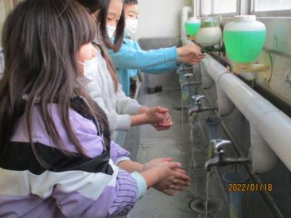 朝の手洗いの様子です。 今朝もしっかり手洗いができていますね。