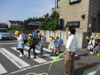 地域の方々に見守られて登校。
