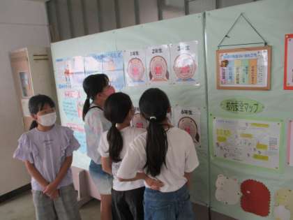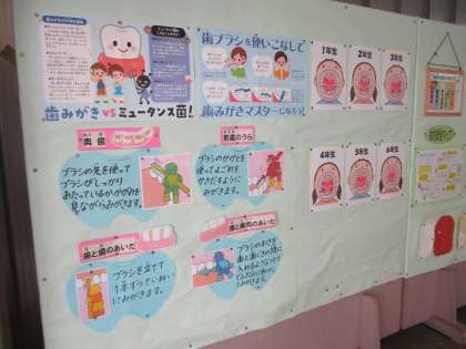保健室前には、虫歯をなくそう!の掲示があります。