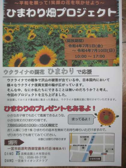 「ひまわり畑プロジェクト」へのご案内です。 ぜひご家族で足を運んでください。