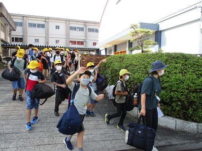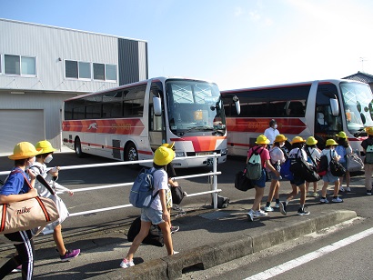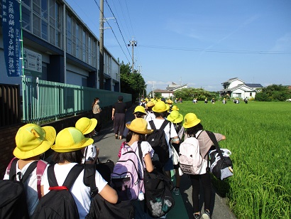学校から少し離れたところに停めてあるバスに向けて、移動しています。