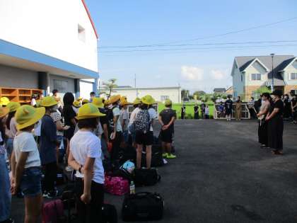 児童たちが「行ってきます」の元気なあいさつをしました。